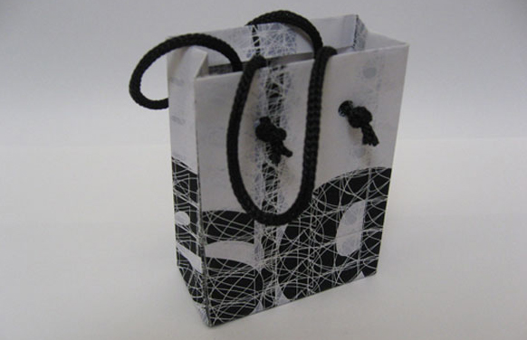 type monument promo piece: shopping bag, 2" x 2.75" x 1"